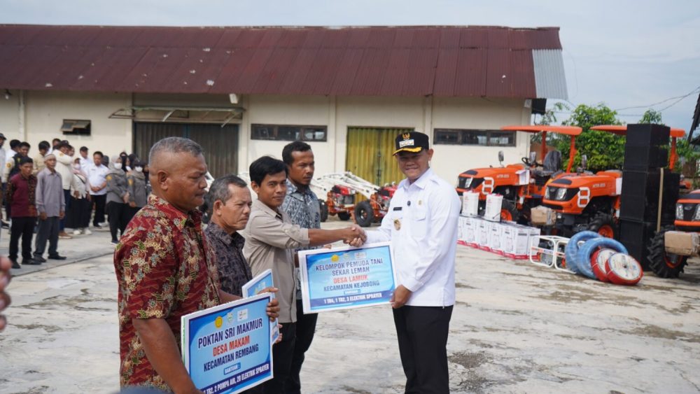 Bupati Fahmi menyampaikan bahwa pada tahun 2025 pemerintah pusat melalui Kementerian Pertanian memberikan dukungan sarana pertanian berupa alsintan kepada 108 kelompok tani penerima kegiatan UPLAND yang tersebar di Kecamatan Rembang, Karangmoncol, Kejobong, dan Pengadegan. Bantuan tersebut terdiri dari 10 unit traktor roda empat, 90 unit traktor roda dua, 58 unit pompa air, serta 488 unit sprayer elektrik.