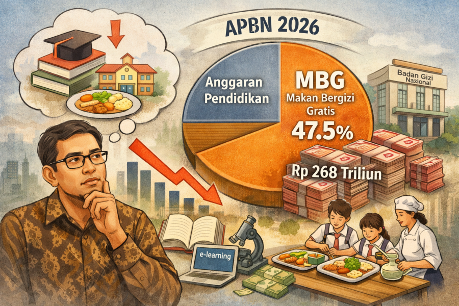 Dalam APBN 2026, anggaran pendidikan ditetapkan sebesar Rp757,8 triliun hingga Rp769 triliun. Dari jumlah tersebut, sekitar Rp223,5 triliun hingga Rp268 triliun atau hampir 47,5 persen dari anggaran pendidikan pusat dialokasikan untuk program MBG yang dikelola Badan Gizi Nasional (BGN).